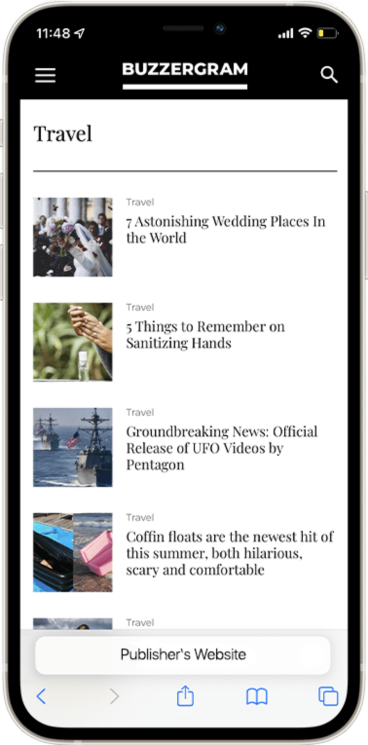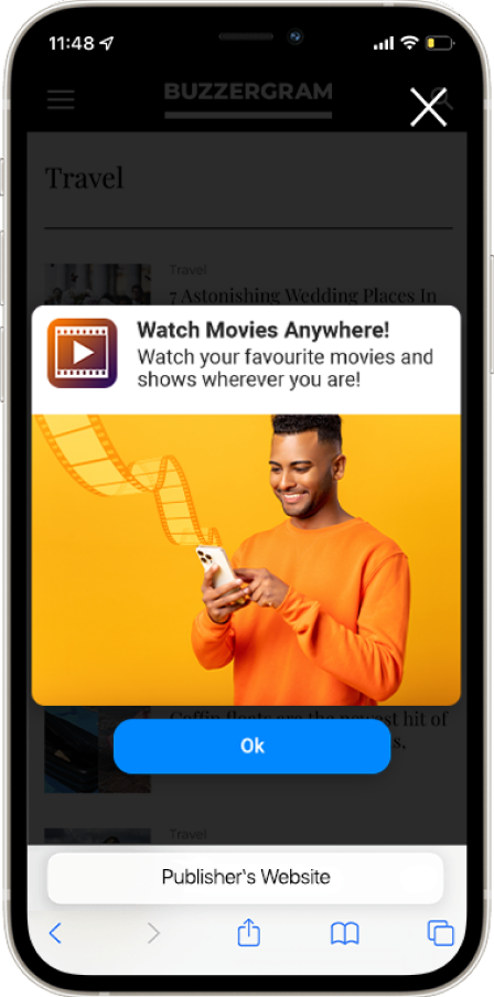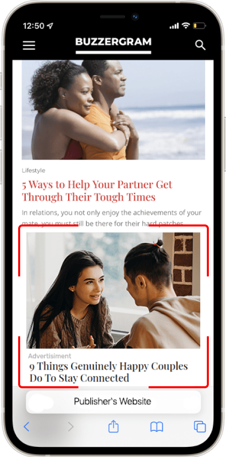Use the switcher below to explore ad formats for advertisers and publishers. You can check both mobile and desktop ad demos.